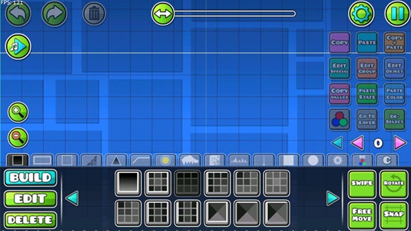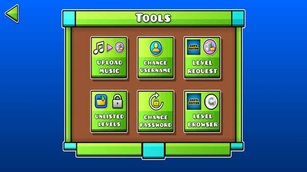- Mapa de Creación: Su Símbolo es un martillo y una llave inglesa. Se le puede conocer como el editor y es el principal añadido de GDPS Editor para crear o modificar niveles del juego.