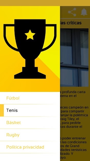 Cómo decíamos usar la app TuDeporte es muy fácil y directo. Nada más abrir la app tendrás una barra lateral a la izquierda donde puedes elegir el deporte que quieres ver las últimas noticias de interés. Hay cuatro principales que son Fútbol, Tenis, Baloncesto y Rugby. Con pulsar a cualquiera de estos deportes se te desplegarán las noticias más interesantes relacionadas con ellos. Ten en cuenta que TuDeporte es una APK completamente gratuita y apta para todos los públicos donde no tendrás anuncios molestos como en los noticieros deportivos digitales ni tendrás que pagar una suscripción como los periódicos físicos o las revistas deportivas profesionales. Por lo tanto, estás recibiendo información deportiva de calidad gratis. Esta aplicación se ha diseñado a medida para los entusiastas de los deportes, lo que te dará fácil acceso a la información sobre tus equipos y jugadores favoritos siempre que lo necesites.